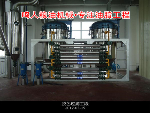 設(shè)備工藝:毛油 → 脫膠脫酸 → 脫色 → 脫臭 → 精煉油